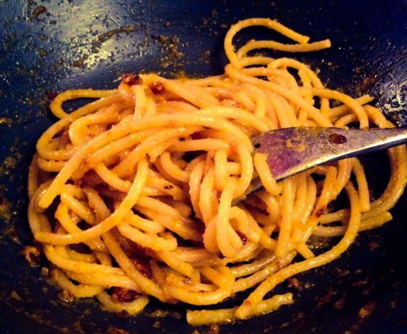 Metto l’acqua a bollire e in una ciotola trito la bottarga con una grattugia a maglie abbastanza larghe per lasciare che si sentano i pezzi ma allo stesso tempo che si ‘sciolga’ a contatto con la pasta. Ultimo tocco, qualche seme di finocchio (me ne ha portati di profumatissimi una mia amica dalla Sicilia e ormai li metto praticamete dappertutto). Aggiungo l’olio e lascio a macerare qualche minuto.