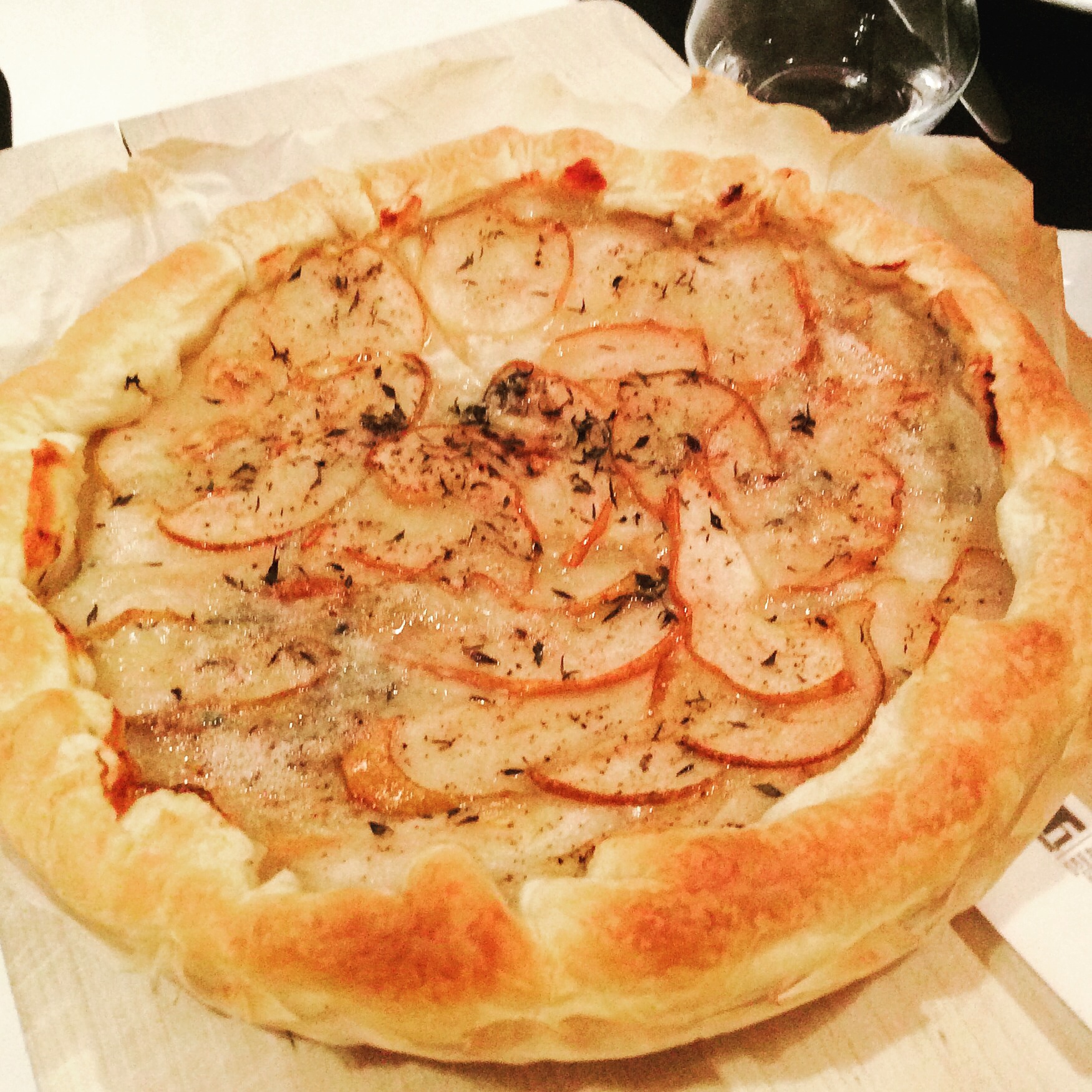 Stendo la sfoglia, spalmo il gorgonzola (forse, la parte più difficile dell’operazione..:-), lavo le pere, lasciando la buccia, le spacco in quattro e poi le taglio a fettine sottilissime. Le aggiungo, spolvero con pepe nero e timo e metto in forno a 180 gradi per 15/20 minuti, fino a quando la pasta non e’ dorata.